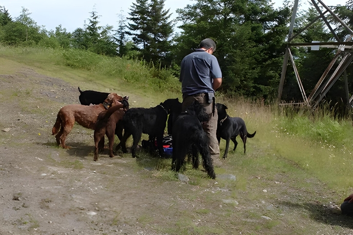 The dogs that board with us will be with us throughout the day. In the evening we go out and play ball or go for a hike. On the weekends all of the dogs go on a hike along the trails in the mountains or along the river (including swimming if they want to). The hikes are generally off leash (this is after confirming or teaching their recall). I use GPS collars to keep track of the dogs during the hikes so we know where they.